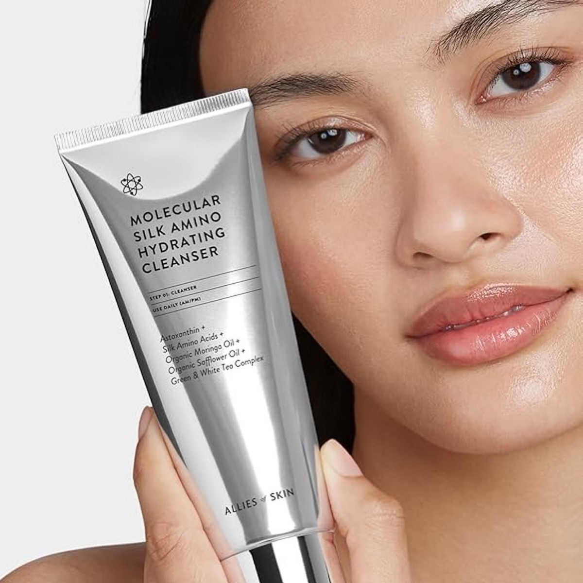 - Allies of Skin Molecular Silk Amino Hydrating Cleanser — гелева формула з амінокислотами та оліями для м’якого очищення.