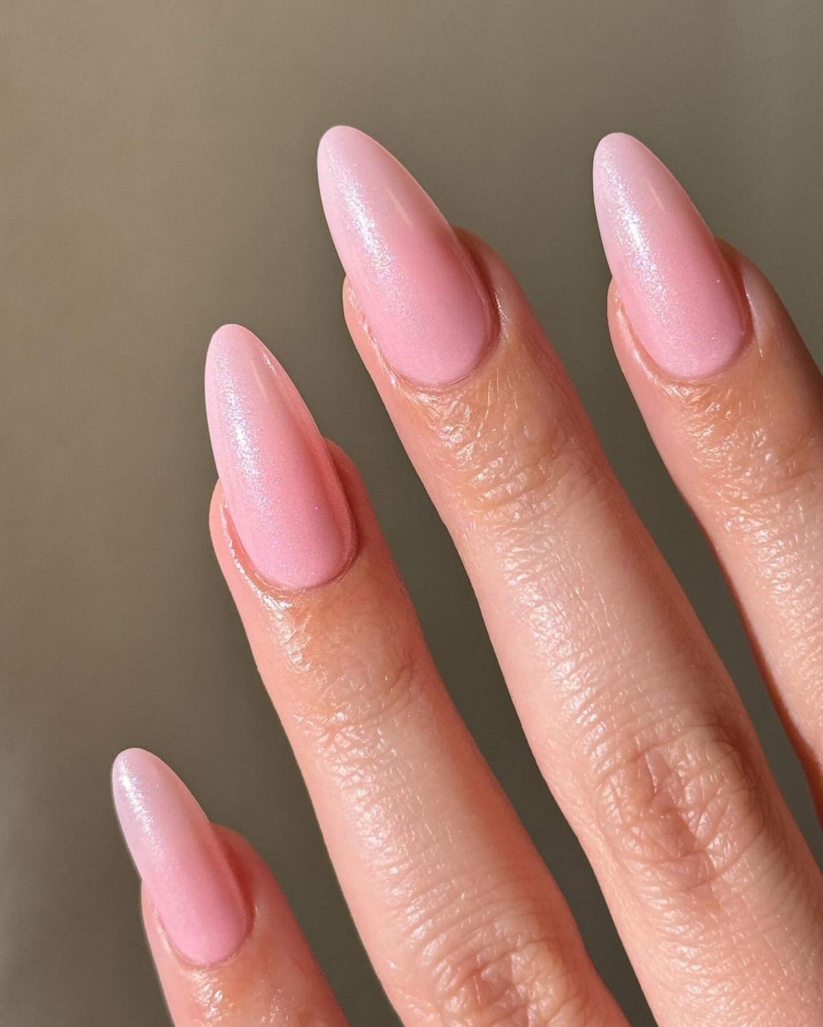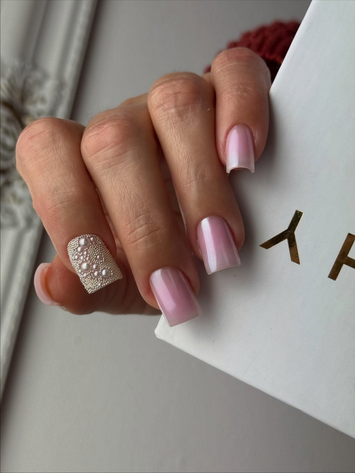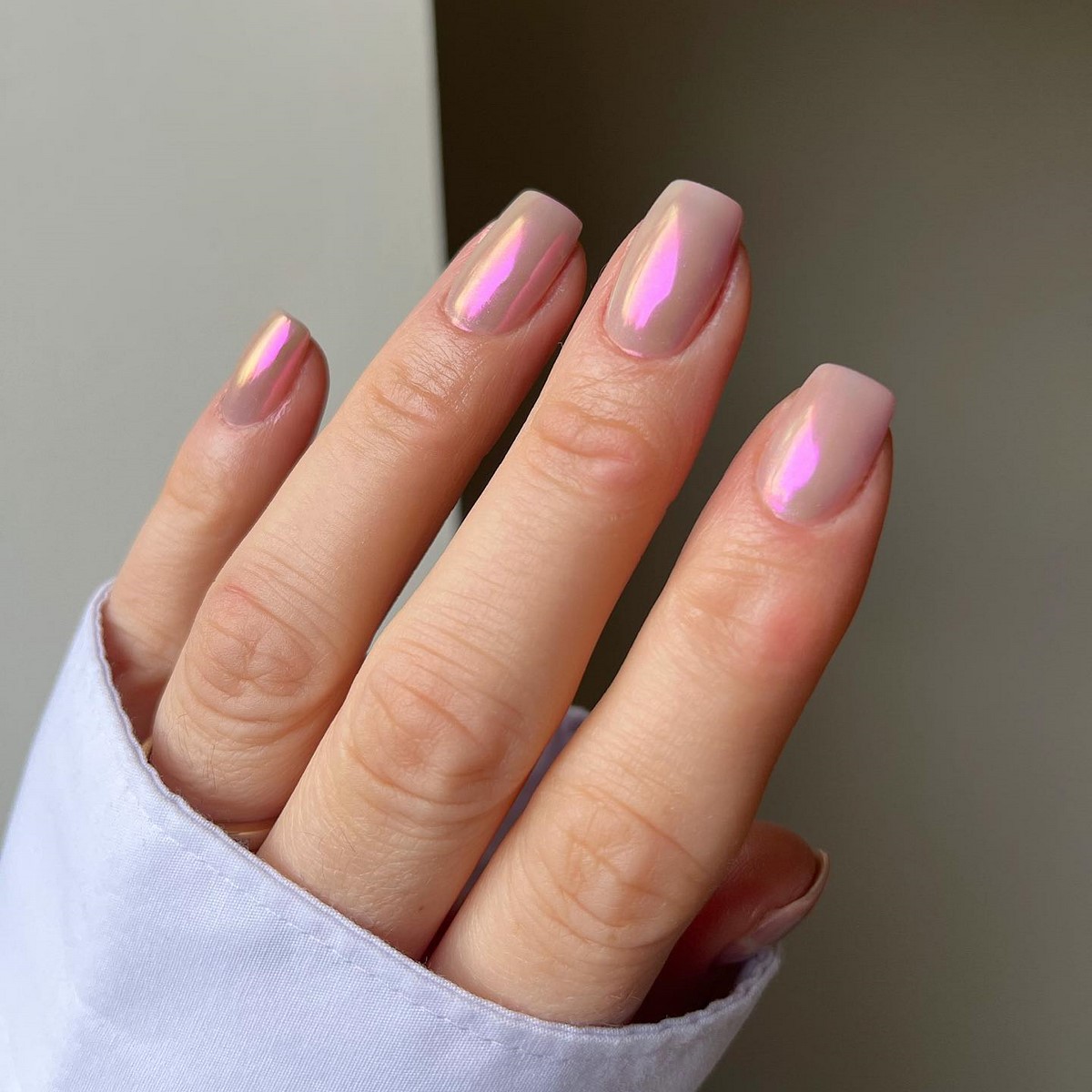 Особливо актуальні молочно-білі, перлинні, рожево-опалові і крижані блакитні відтінки. Перламутр може бути як легким, напівпрозорим, так і більш насиченим — залежно від бажаного ефекту.