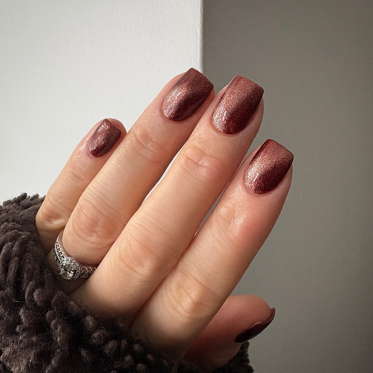 Цікаво: в січні 2026 року Cat Eye все частіше виконують в м’якому градієнті або з ледь помітним діагональним відблиском, що робить манікюр більш витонченим і модним.