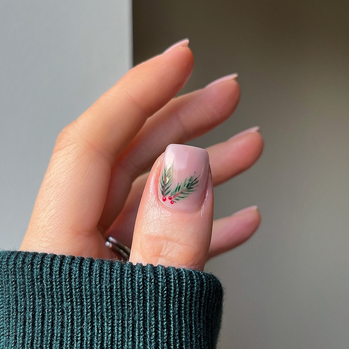 Важливо: щоб манікюр з ялиновими мотивами виглядав актуально в січні, вибирайте матову або сатинову базу — вона робить дизайн більш стильним і «дорослим».