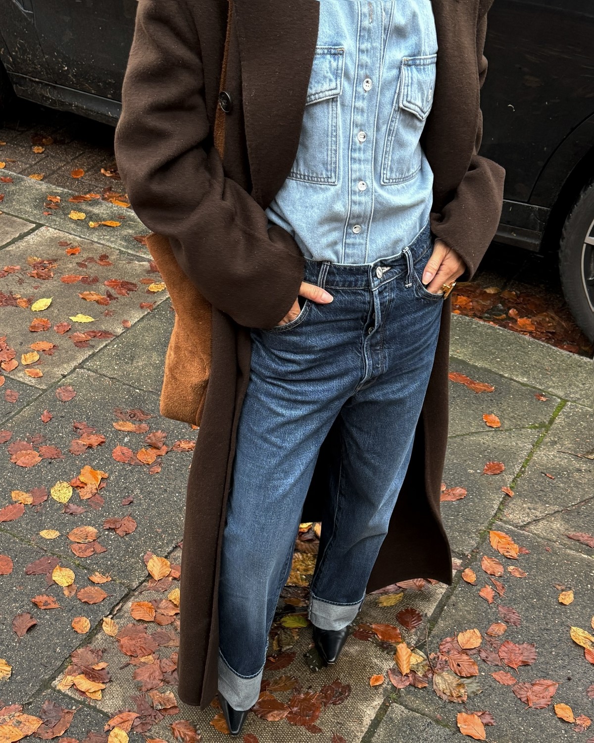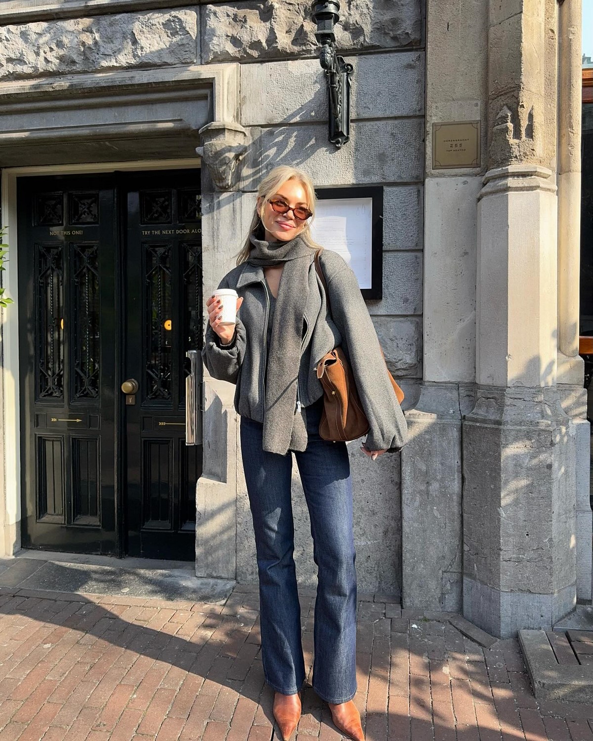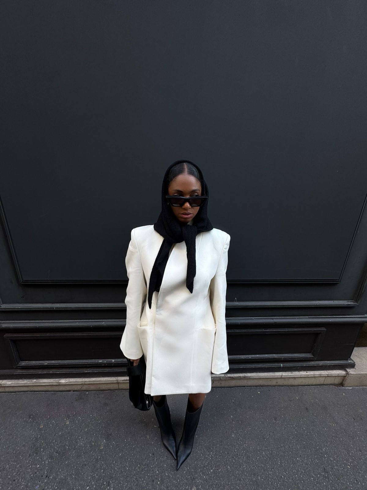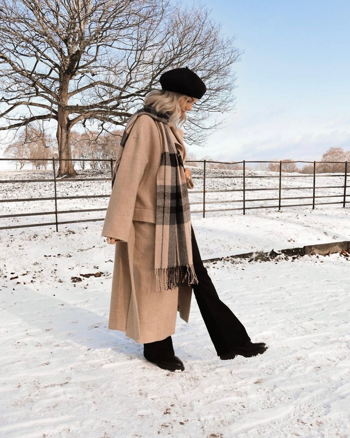- Довгий шарф — затишний, обгорнутий кілька разів навколо шиї або просто накинутий на плечі, він додає розслабленості.
