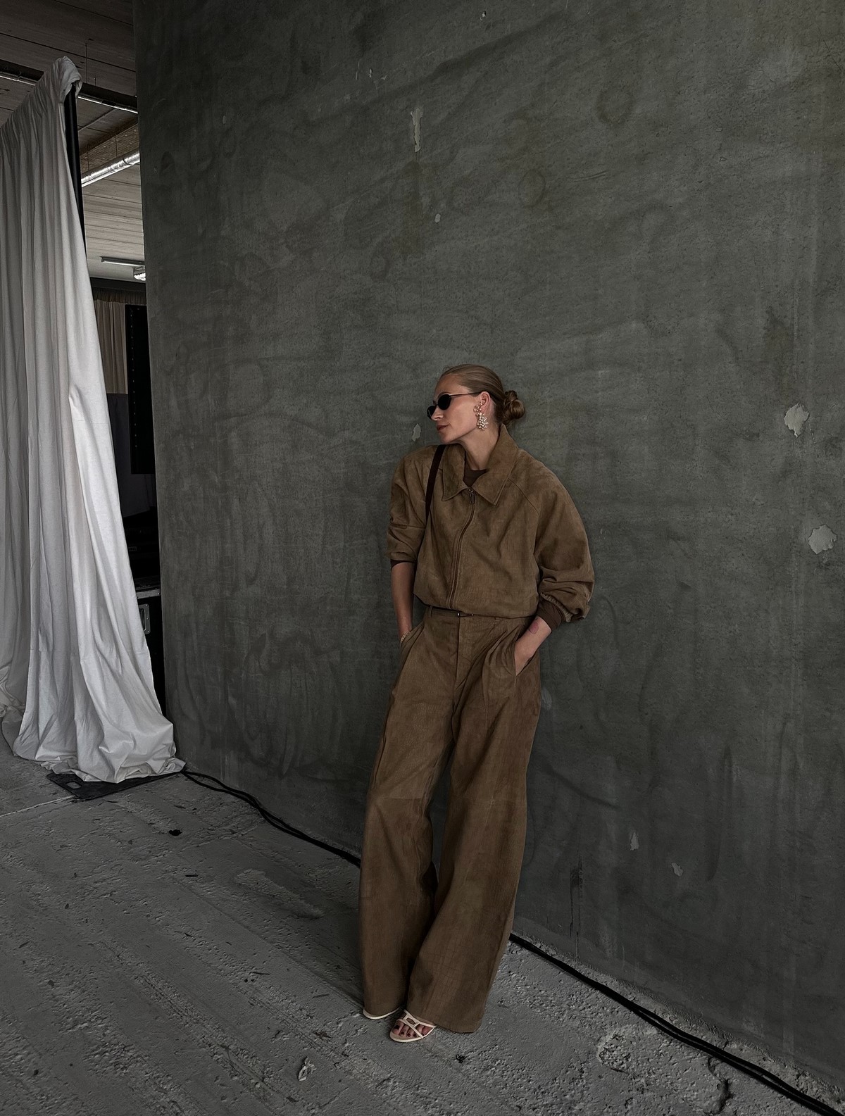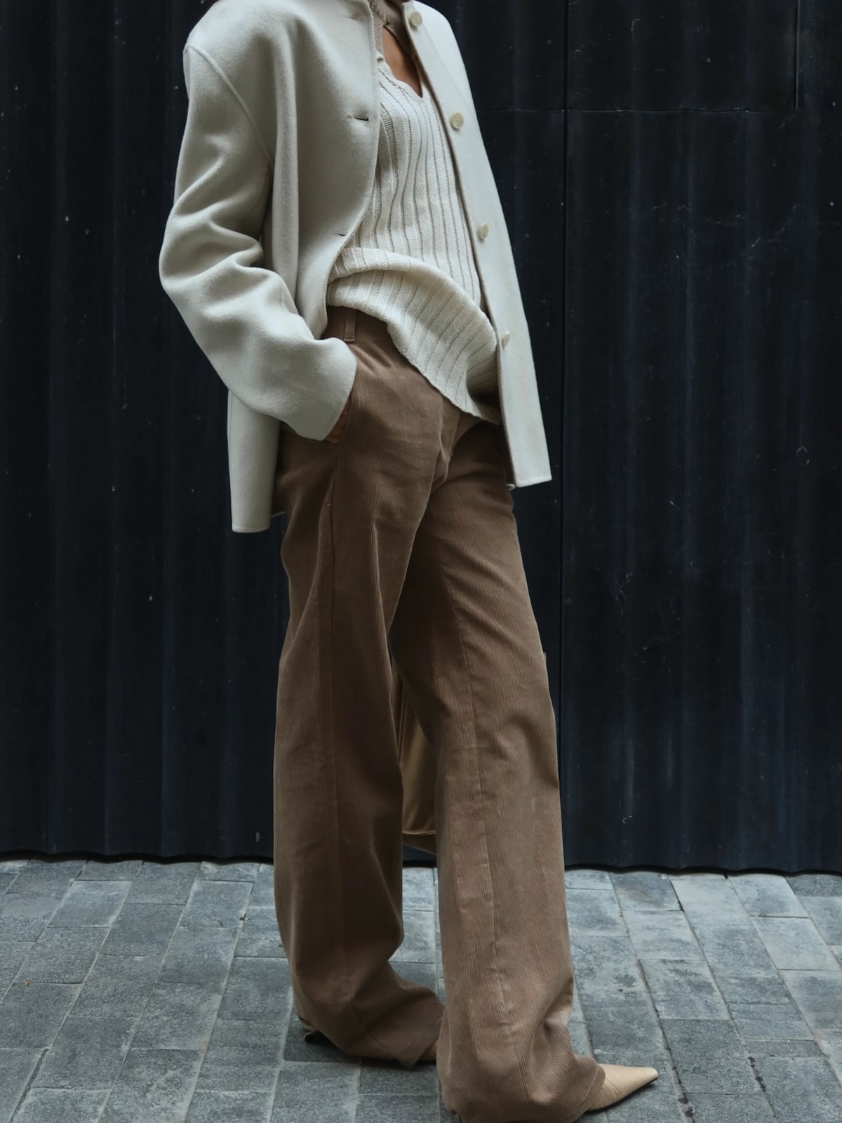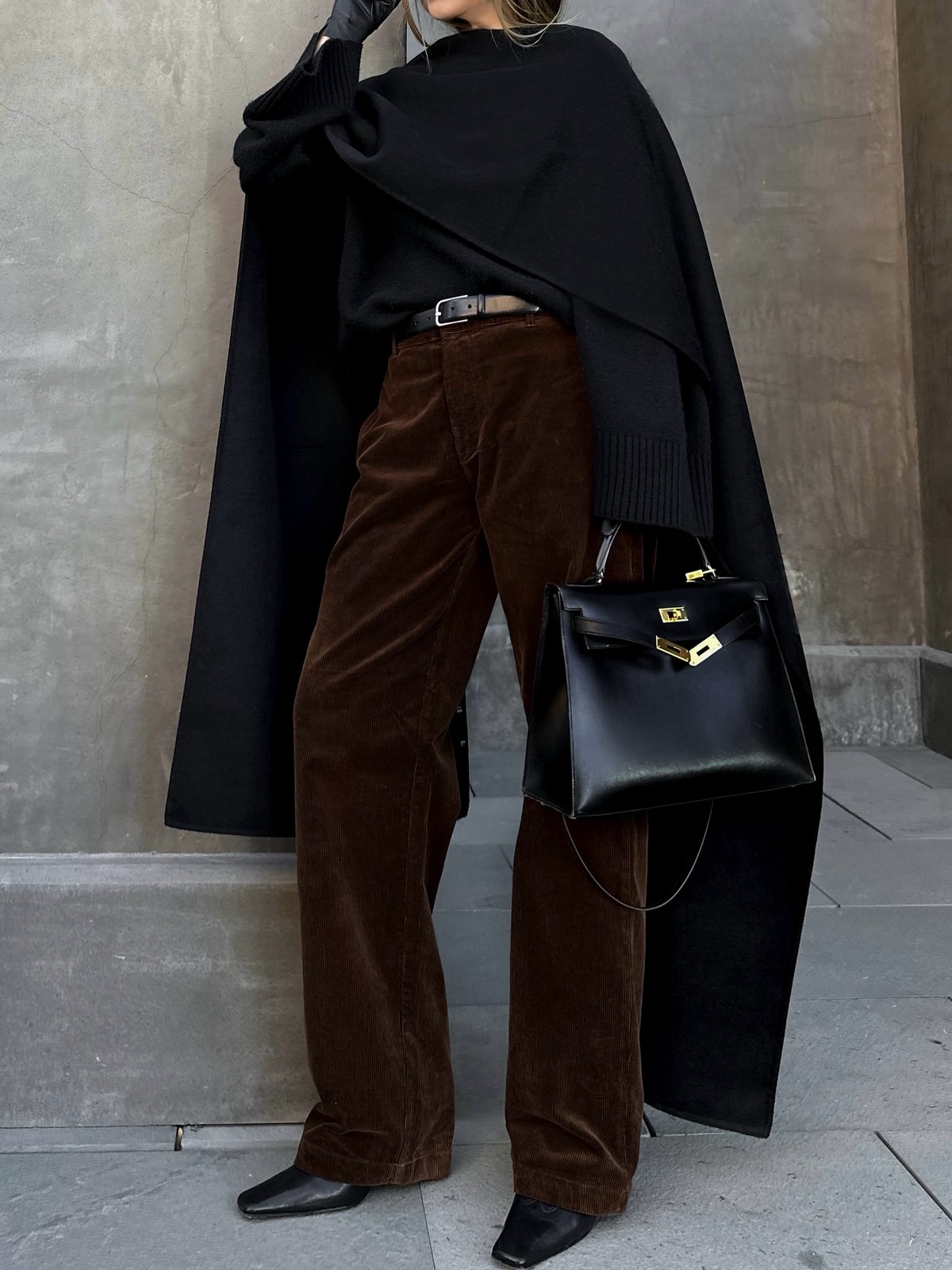 Широкі, вільні, злегка подовжені брюки — абсолютний must-have. На подіумах домінують моделі з вовни, деніму і шкіри, а також брюки з защипами і завищеною талією. Популярні образи «total beige» і «total grey», а також контрастні поєднання з м’яким трикотажем або строгим жакетом.