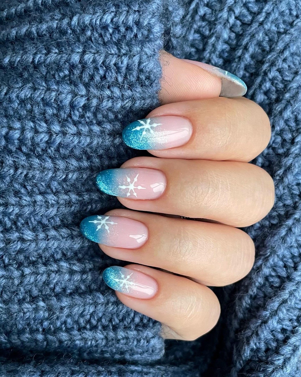 Темно-синій манікюр — один з найпопулярніших варіантів грудня. Це відтінок нічного зимового неба, який асоціюється з очікуванням свята і затишком довгих вечорів.