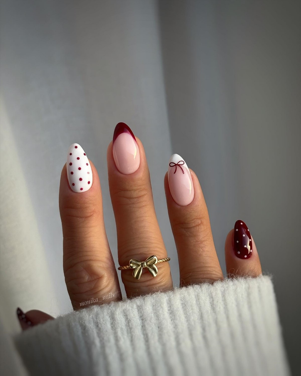 - Бургунді і винні тони – класика зимового сезону, ці насичені відтінки червоного надають манікюру елегантність і витонченість