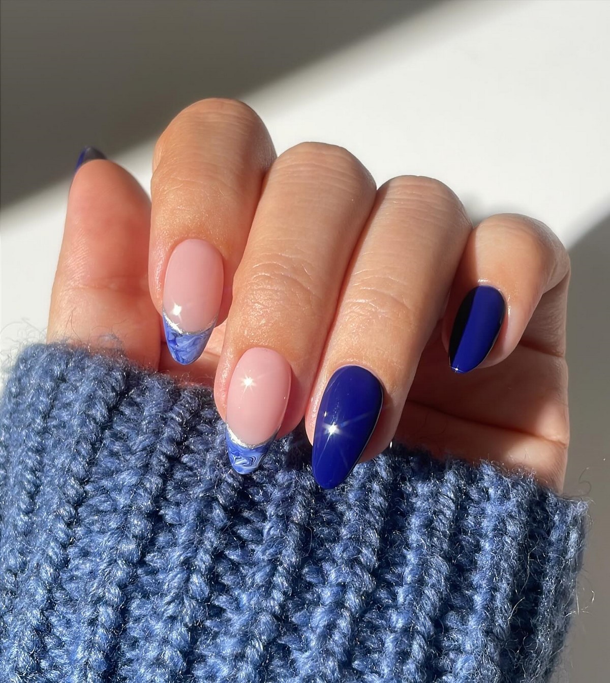 - Темно-синій і сапфіровий – холодні глибокі відтінки синього створюють враження морозної свіжості і відмінно поєднуються зі сріблястими акцентами