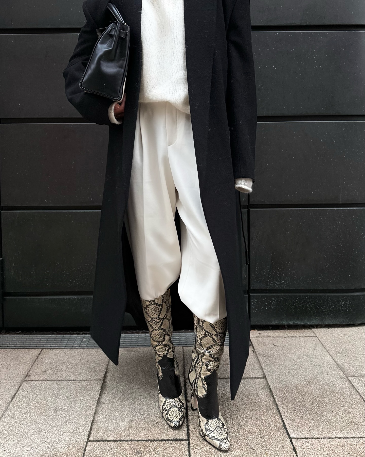 Білосніжні чоботи стають головним колірним трендом сезону, вносячи свіжість в традиційну осінньо-зимову палітру. Незважаючи на уявну непрактичність, білий колір у взутті виглядає сучасно, графічно і неймовірно стильно. Білі чоботи створюють ефектні монохромні образи в поєднанні з білими або кремовими тотал-луками, а також служать яскравим контрастом до темних осінніх відтінків — чорного, графітового, глибокого бордо.