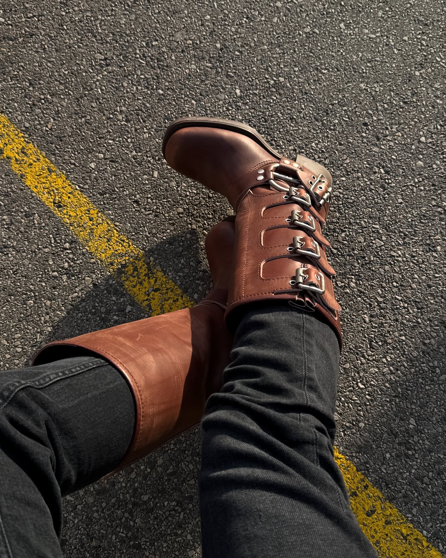 - Грубий шик: байкерські чоботи з масивною фурнітурою і важкими підошвами
