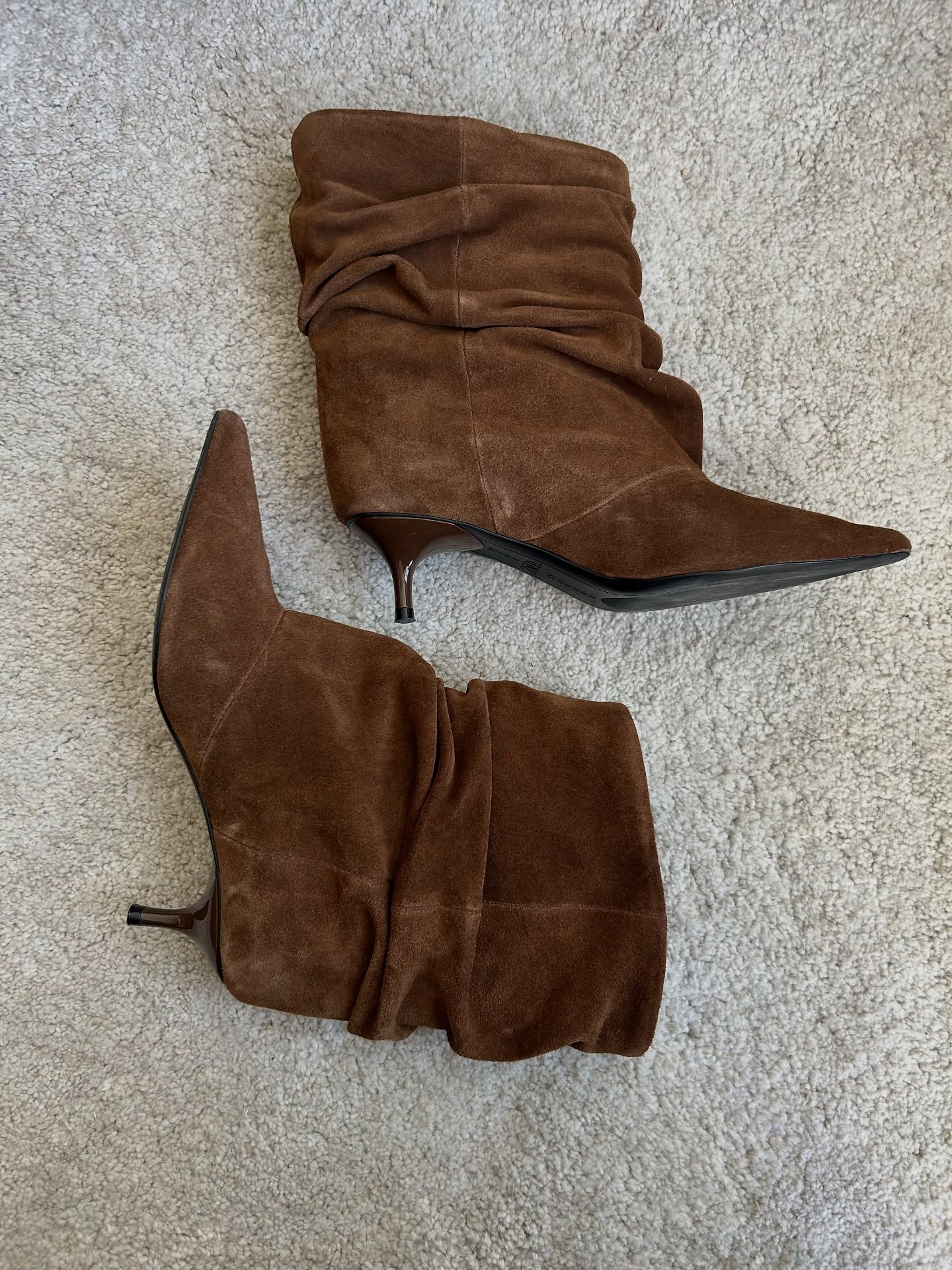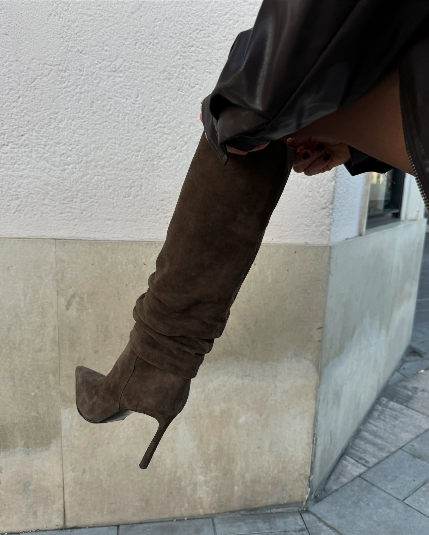 Розслаблені чоботи-слоучі з м’яко спадаючими халявами втілюють філософію комфортного шику і невимушеної елегантності. Їх вільний крій створює ефект недбалості, який так цінується в сучасній моді. Слоучі ідеально поєднуються з об’ємними светрами, подовженими кардиганами і широкими брюками, формуючи гармонійні багатошарові образи в стилі сучасного мінімалізму.