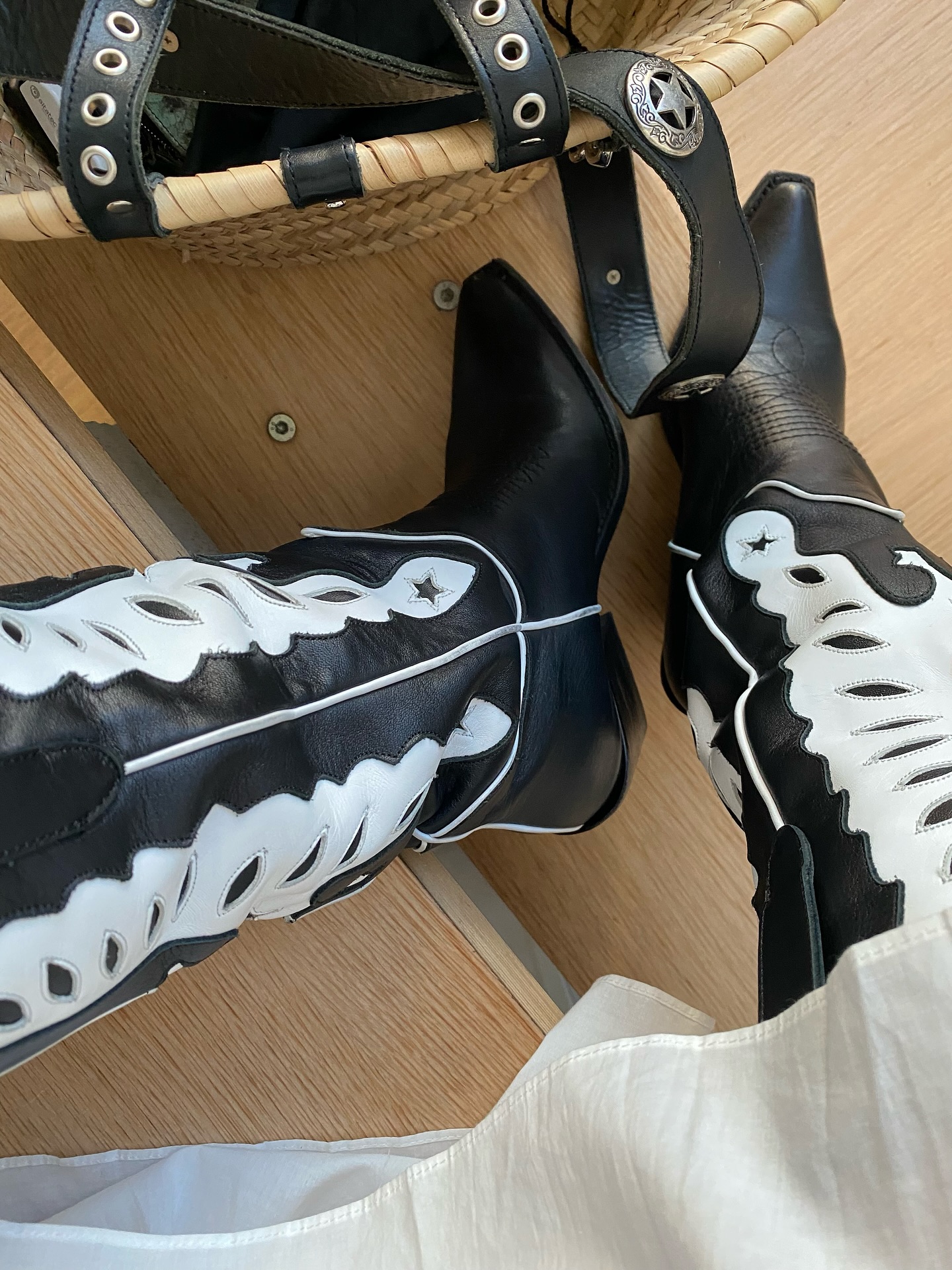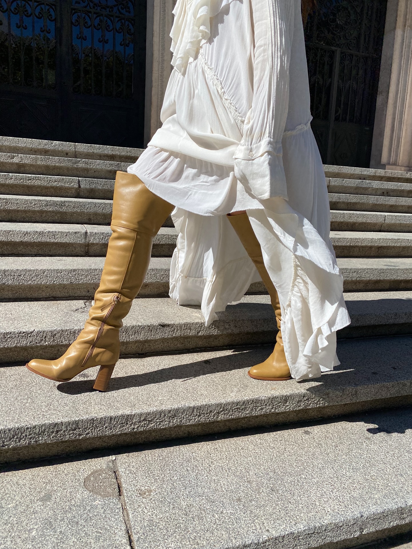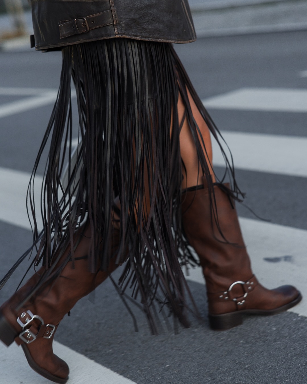 Чоботи з етнічними мотивами, бахромою, вишивкою і вінтажними деталями апелюють до волелюбної естетики сімдесятих. Бохо-стиль у взутті пропонує відійти від суворих канонів і експериментувати з текстурами, кольорами та декоративними елементами. Такі моделі стають ідеальним доповненням до багатошарових образів з довгими спідницями, в’язаними пончо і об’ємними шарфами, створюючи атмосферу артистичної богемності.