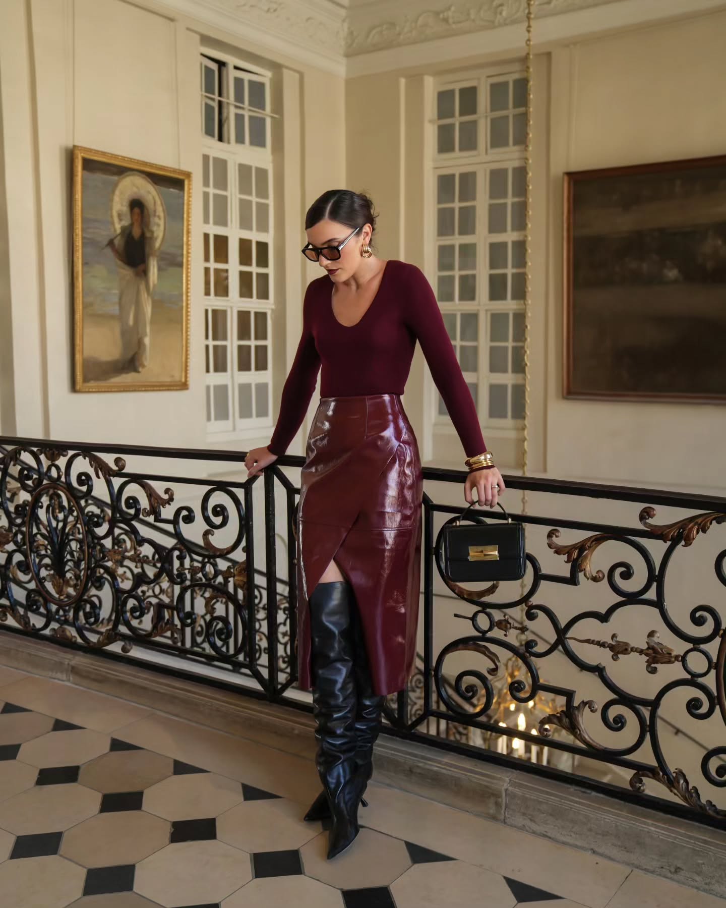 - Друга шкіра: облягаючі чоботи-панчохи, що підкреслюють лінії ніг
