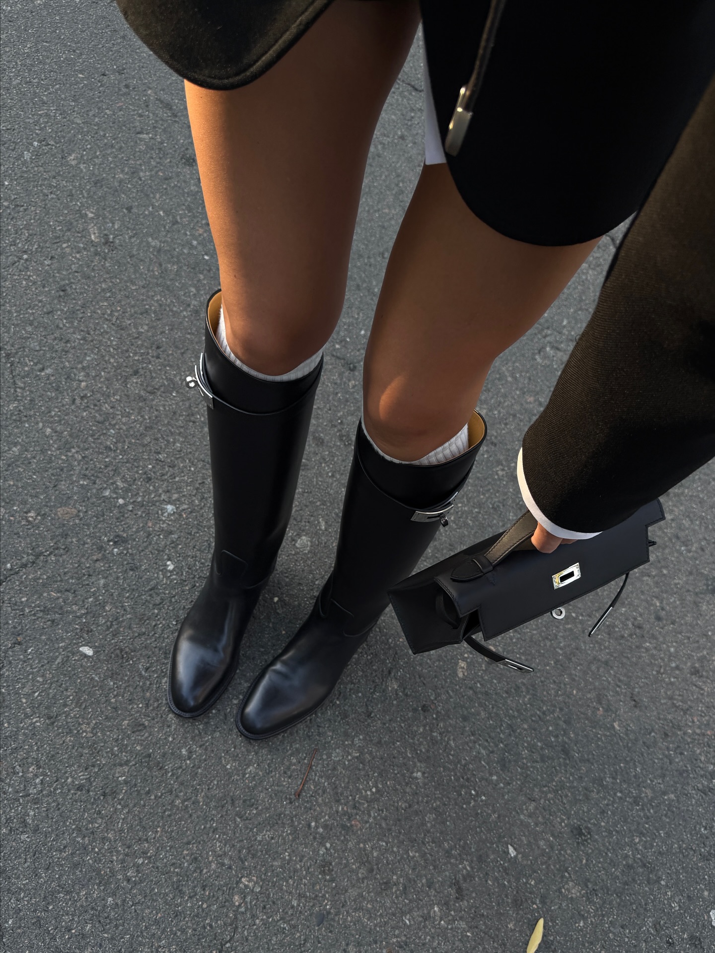 Класичні жокейські чоботи з характерним силуетом і мінімалістичним дизайном втілюють аристократичну елегантність і витончений смак. Їх впізнавана форма із заокругленим носком і середньою висотою халяви універсальна для створення як ділових, так і повсякденних образів. Жокейські чоботи чудово поєднуються з брючними костюмами, міді-спідницями і класичними тренчами, підкреслюючи вишуканість і впевненість власниці.