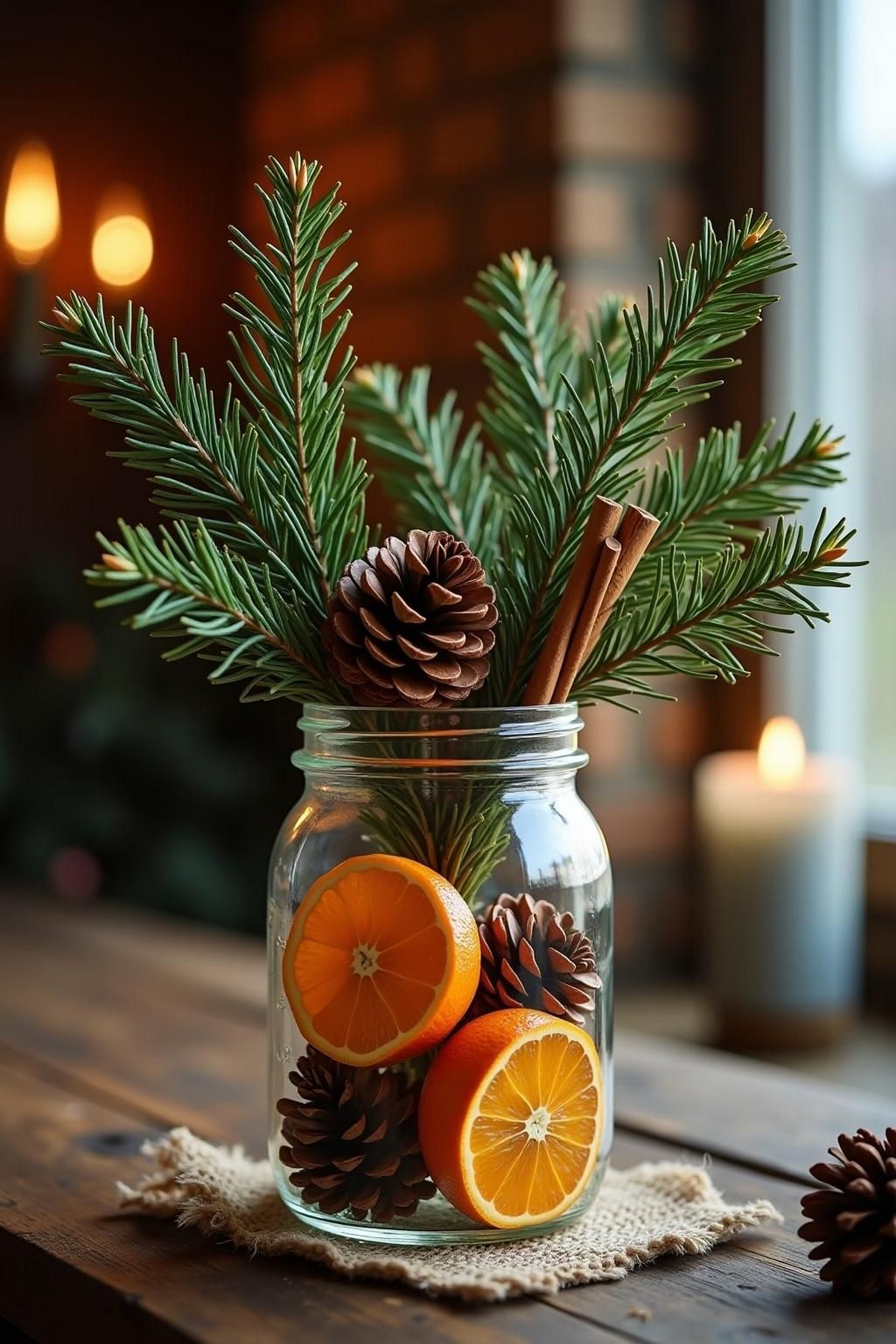 Композиції зі свічками можуть доповнюватися ялиновими лапами, скляними кулями і металевими підсвічниками візуально холодних відтінків.