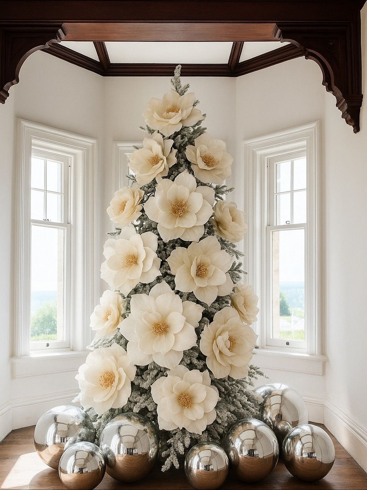 Цікаво: одноколірні ялинки знову в тренді, але тепер додають нюанси — наприклад, весь декор у відтінках білого з різною фактурою: мат, перламутр, скло.
