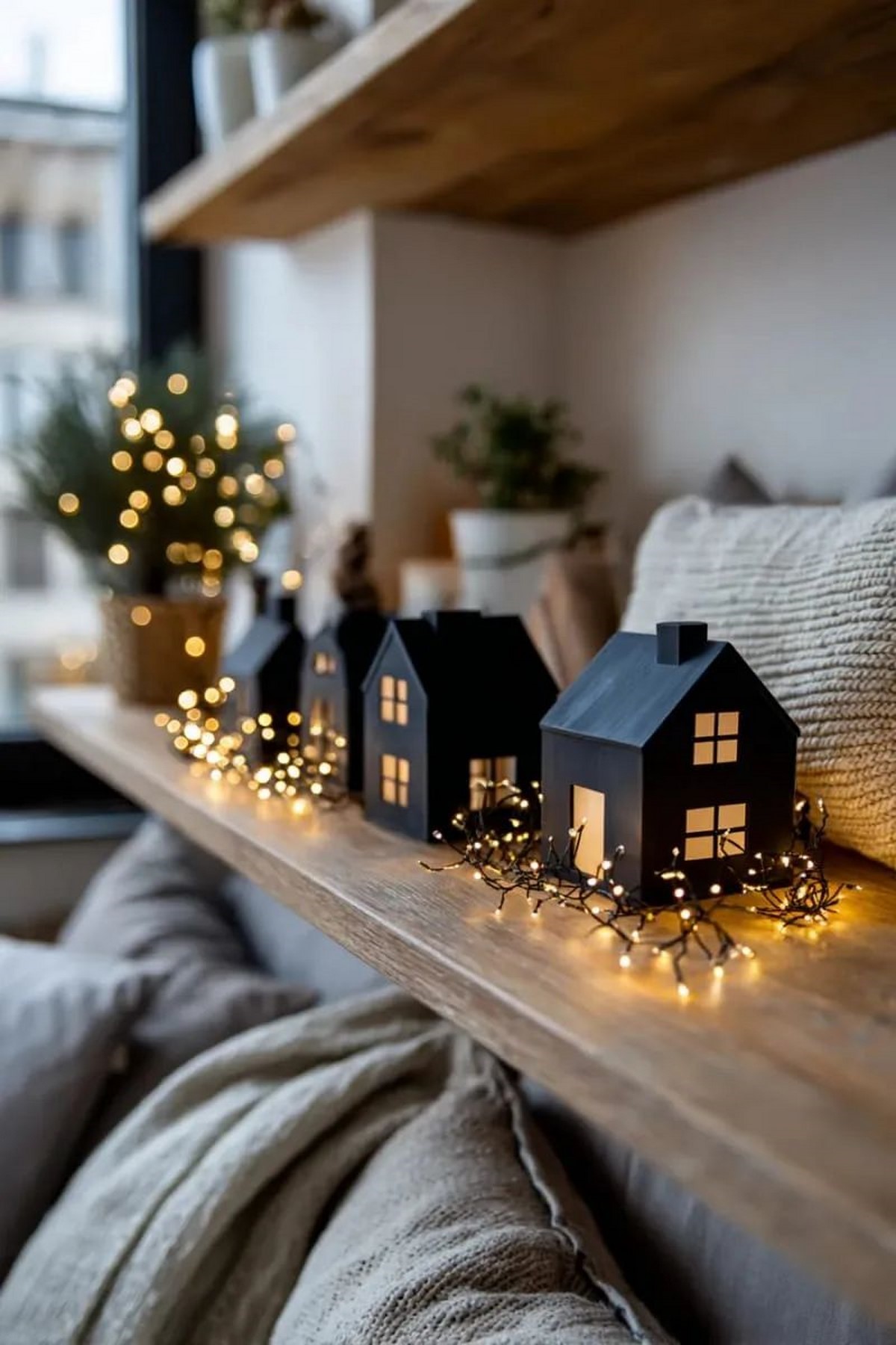 Прикраса вікон зміщується до мінімалізму: тонкі гірлянди-нитки, паперові сніжинки складного вирізу, підвісні зірки. Ефект запотілого візерунка знову в моді — але акуратний, графічний.