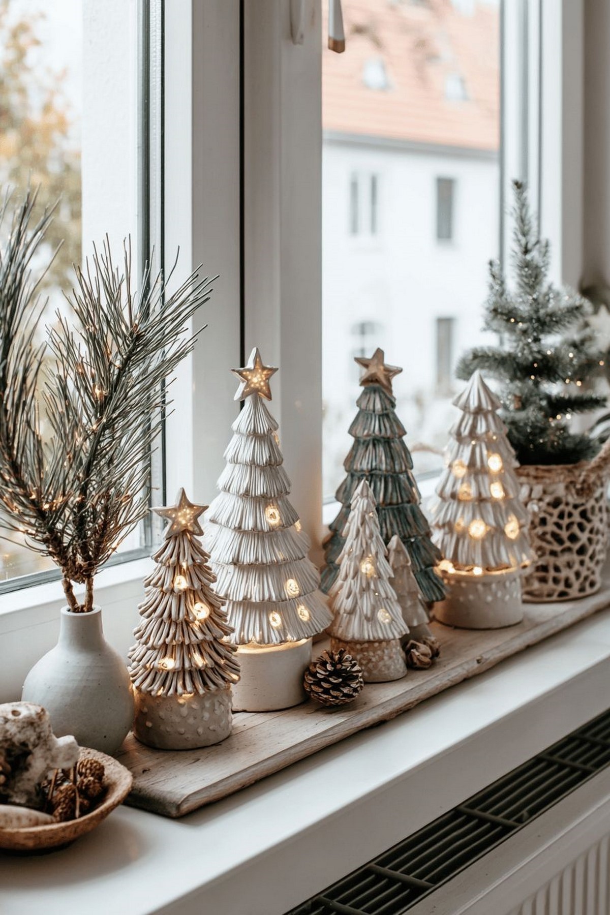 У 2026 році популярні віконні композиції зі свічок (LED), невеликих ялинок і міні-іграшок на підвіконні — створюють затишок вулицям і дому одночасно.