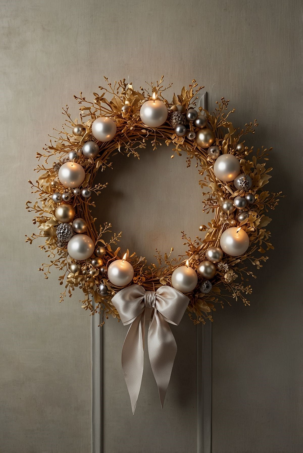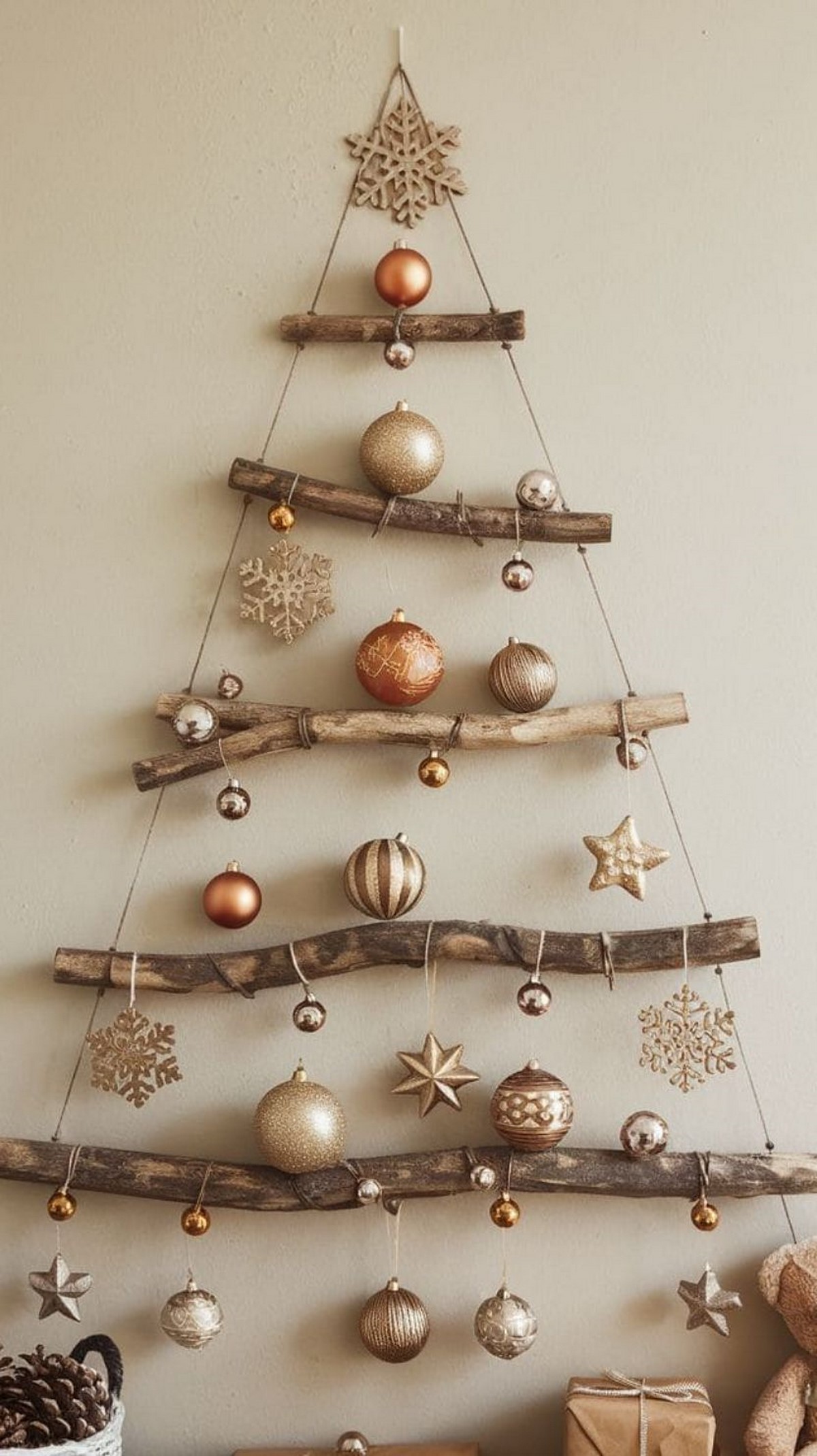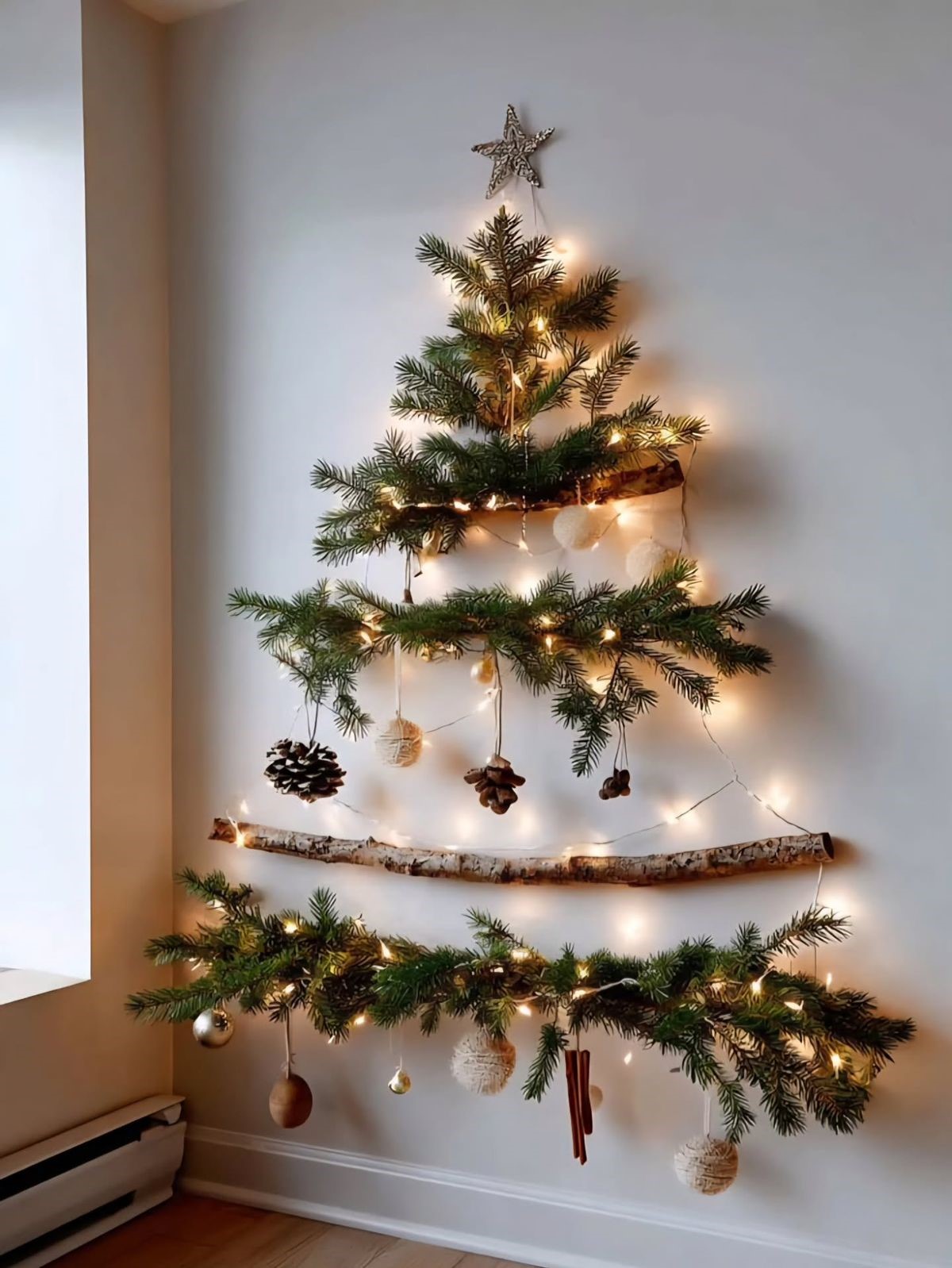 Стіни прикрашають мінімалістичними композиціями — гілки туї або евкаліпта, світлові інсталяції, рамки з новорічними принтами. У моді — акуратні вертикальні гірлянди і світлові краплі.