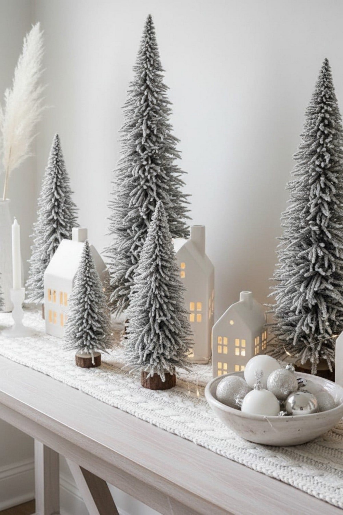 Для комодів тренд — мінімалістичний «зимовий натюрморт»: одна декоративна ялинка, невелика лампа, свічка і пара іграшок. У 2026 році перевантажувати поверхню великою кількістю дрібних предметів не модно.