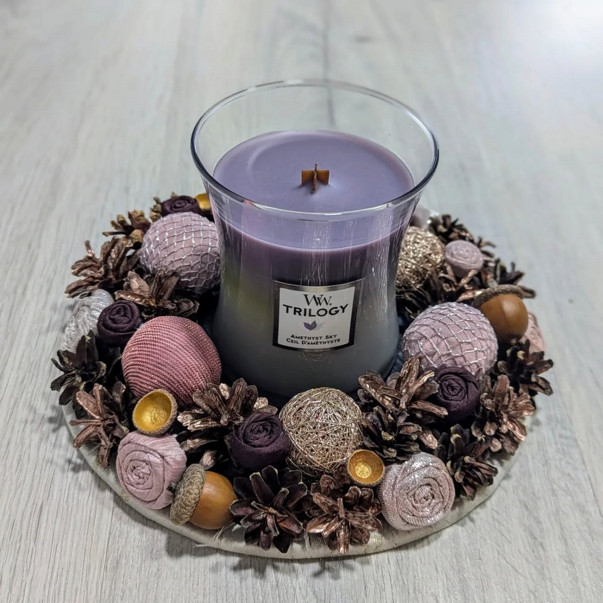 Свічки залишаються головним елементом атмосфери. У моді — товсті циліндричні форми, свічки-кристали, свічки з ефектом льоду. Кольори — білий, карамель, золото, димчастий.