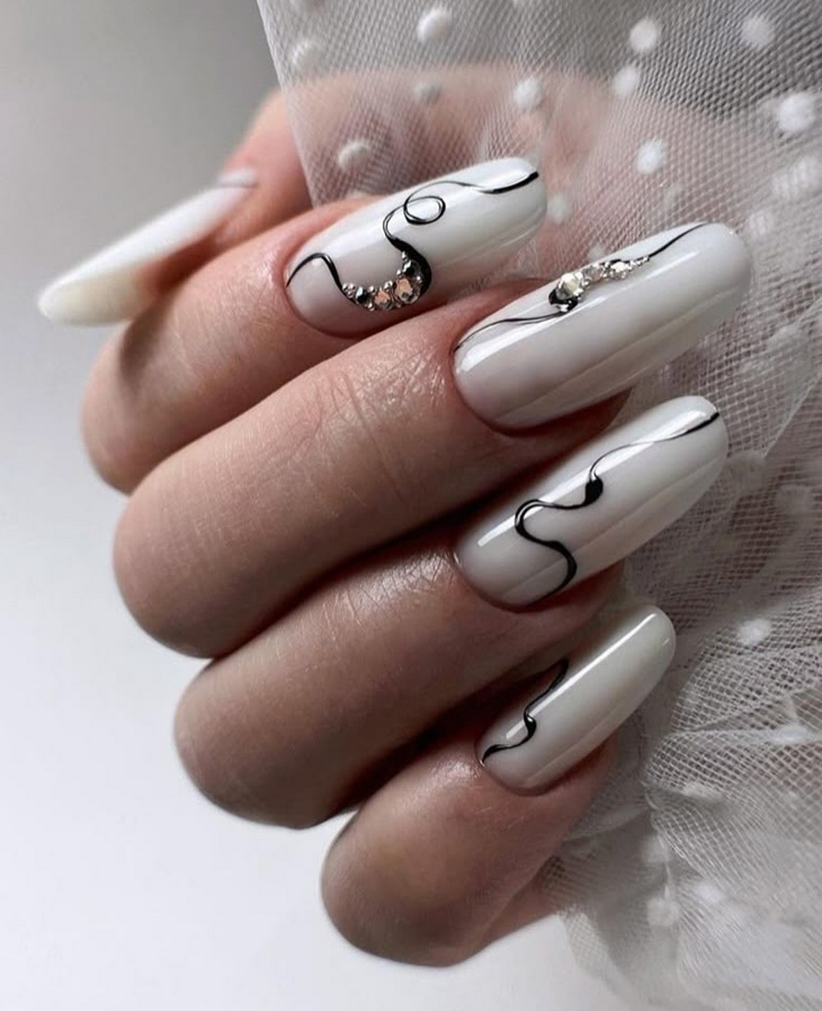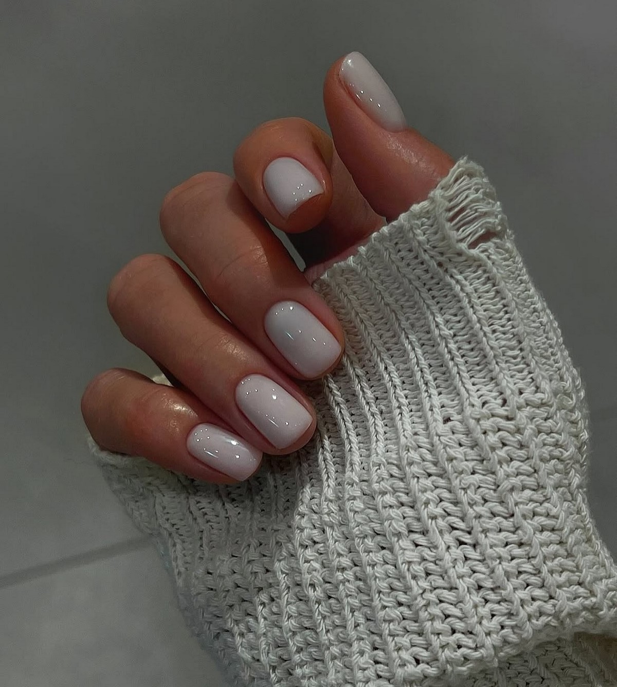 Молочний відтінок — ніжна альтернатива білому. У жовтні він стає базою для мінімалістичних і елегантних дизайнів. Молочний манікюр можна прикрасити тонкими лініями, легким градієнтом або перловим покриттям. Це ідеальний варіант для тих, хто любить жіночний і акуратний образ.