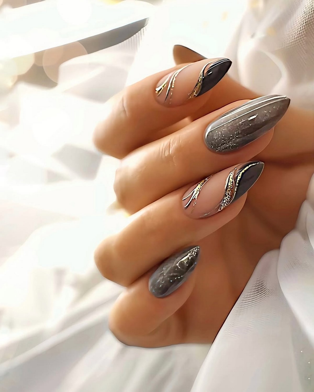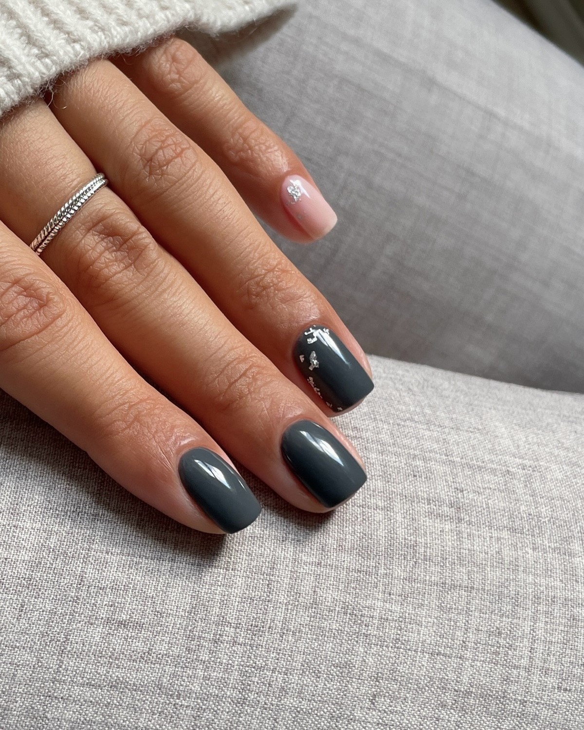 Стриманий, але стильний колір, який прекрасно вписується в осінню палітру. Сірий в манікюрі створює відчуття спокою і мінімалізму. Особливо красиво виглядає в комбінації з сріблястим декором або блискітками. Такий манікюр універсальний — він однаково доречний і в офісі, і на вечірньому заході.