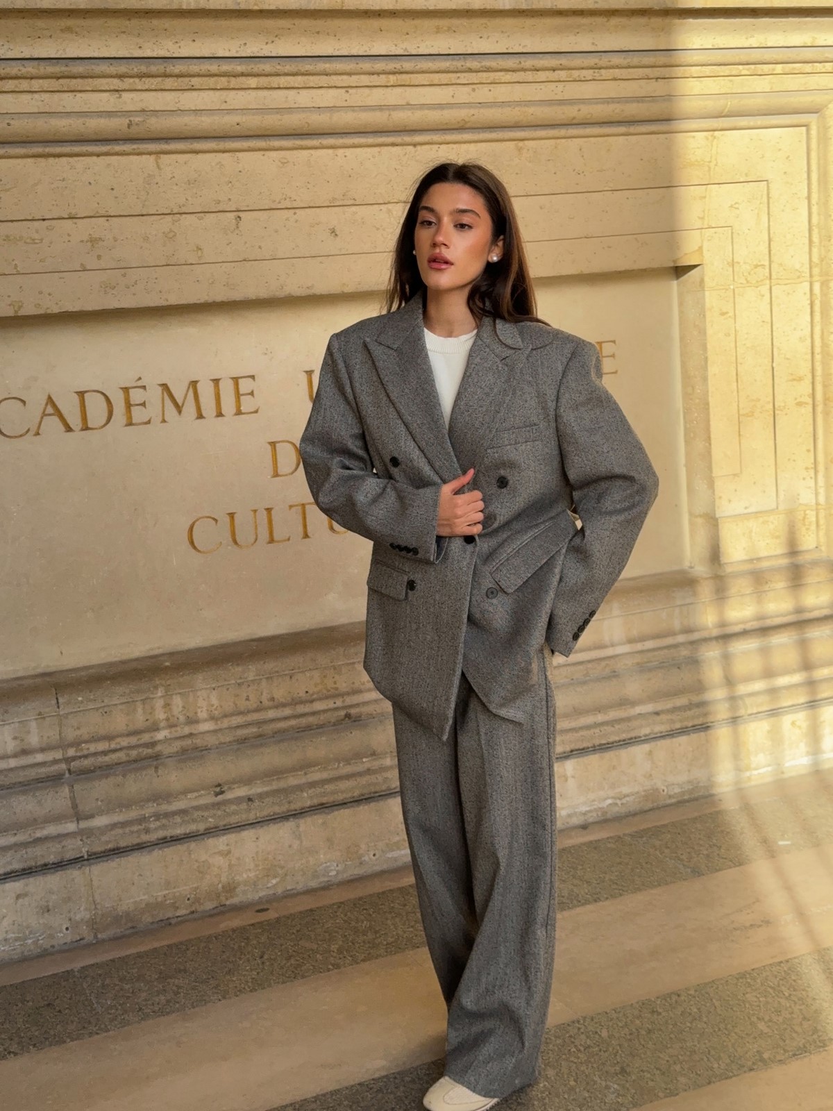 Брючний костюм взимку 2025-2026 знову стає обов’язковим елементом гардеробу — і не тільки офісного. Дизайнери пропонують утеплені моделі з вовни, твіду або щільного трикотажу, які ідеально підходять для повсякденних образів.