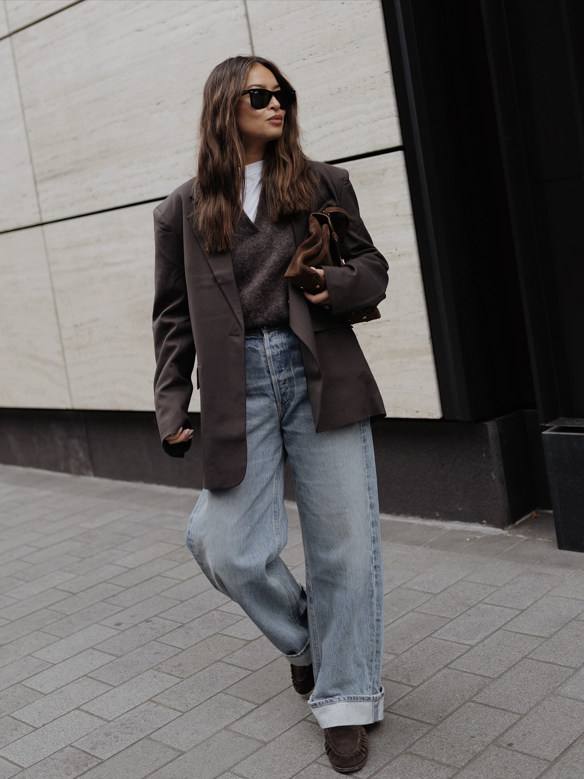 Популярні варіанти — костюми з прямими брюками і довгими приталеними жакетами, а також об’ємні моделі в стилі power suit. Їх легко доповнювати водолазками, сорочками, светрами і навіть пуховими жилетами, створюючи різні рівні утеплення і стилю.