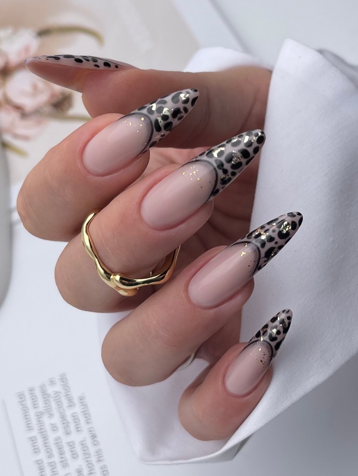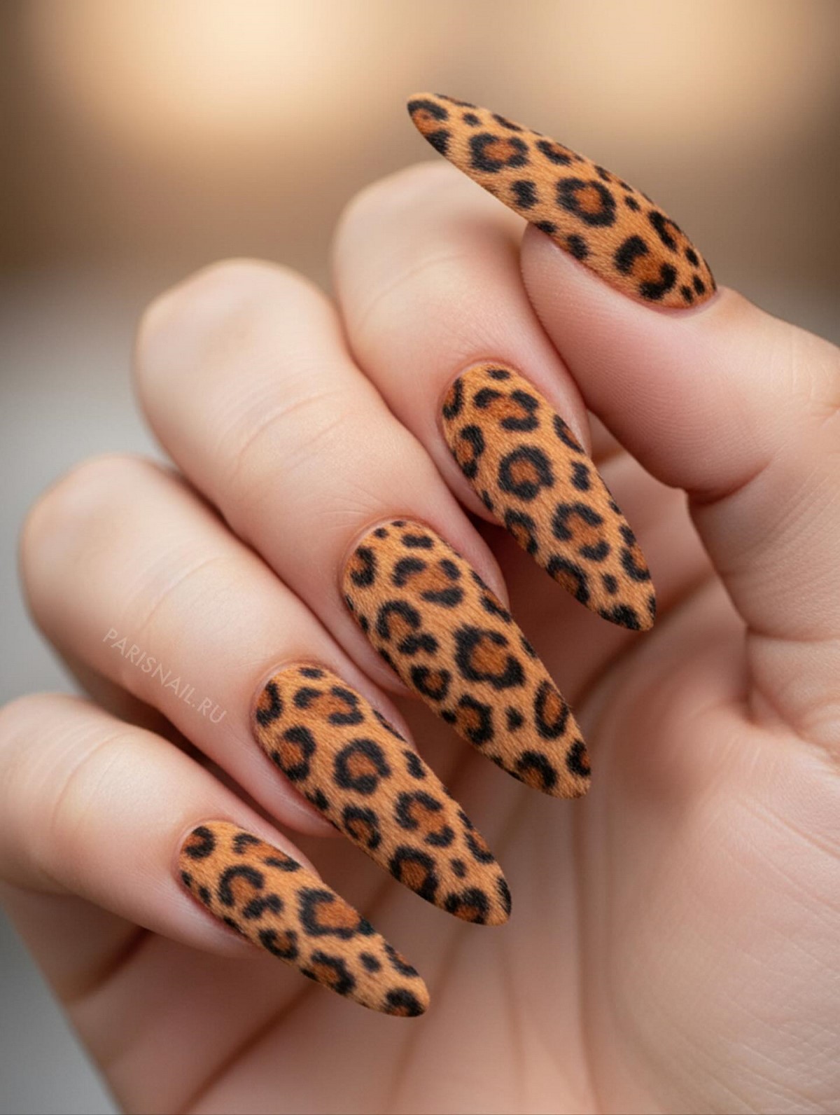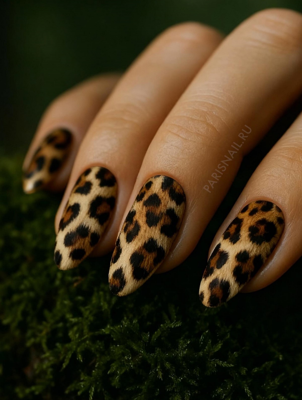 Цього року «анімал-принт» виходить за рамки класики — майстри поєднують його з френчем, «котячим оком», омбре і слайдерами, створюючи сучасний і більш елегантний стиль.