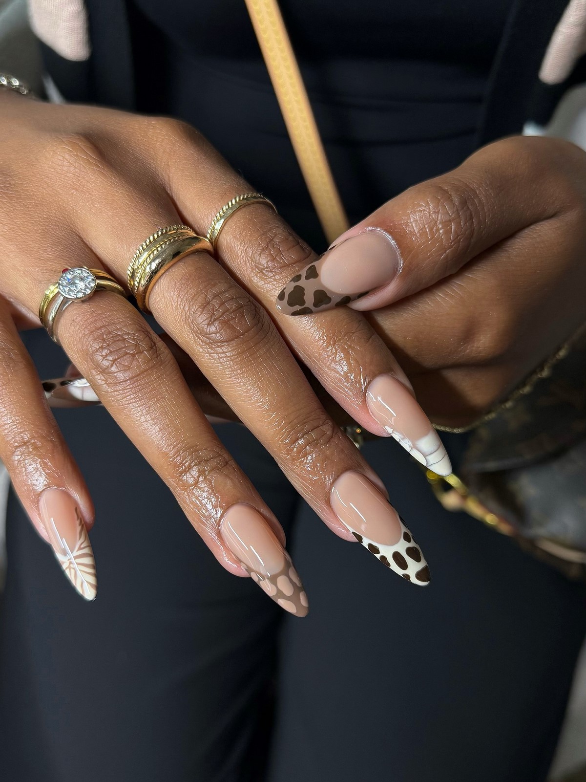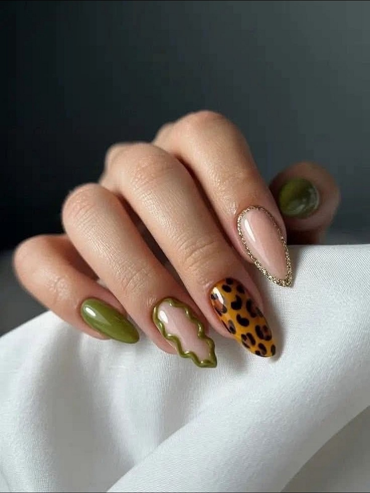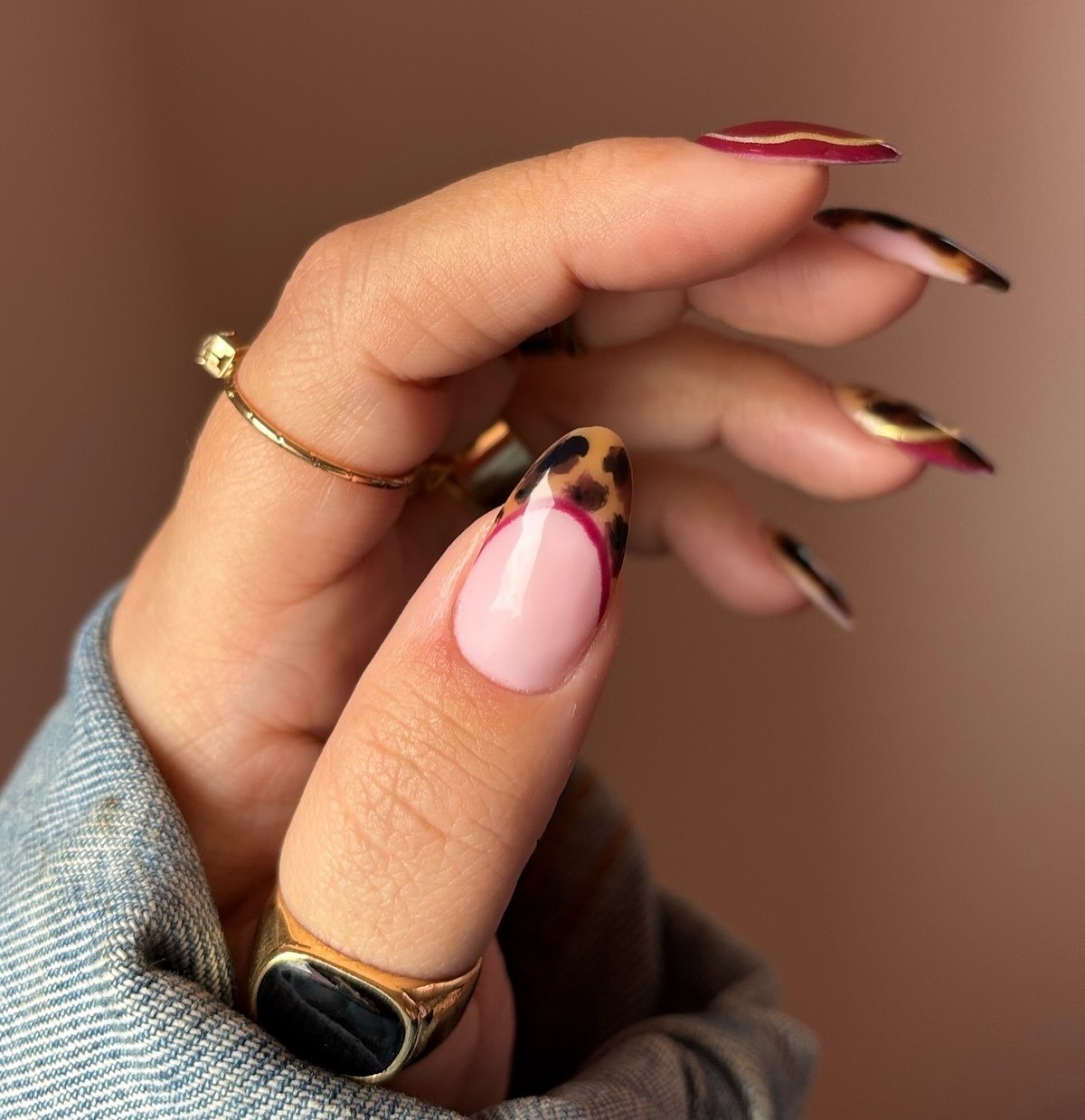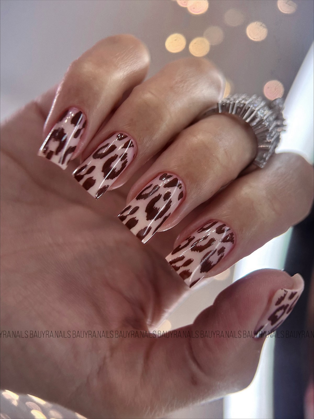 Цього року «анімал-принт» виходить за рамки класики — майстри поєднують його з френчем, «котячим оком», омбре і слайдерами, створюючи сучасний і більш елегантний стиль.