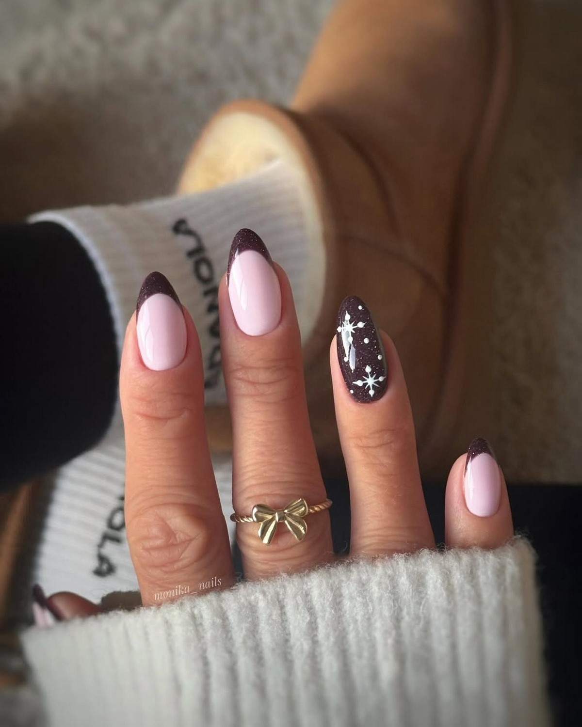 Не пропусти: мінімалізм + блискітки + одна об’ємна сніжинка — найстильніший мікс нового сезону. Це виглядає дорого, сучасно і підходить під будь-який зимовий образ.