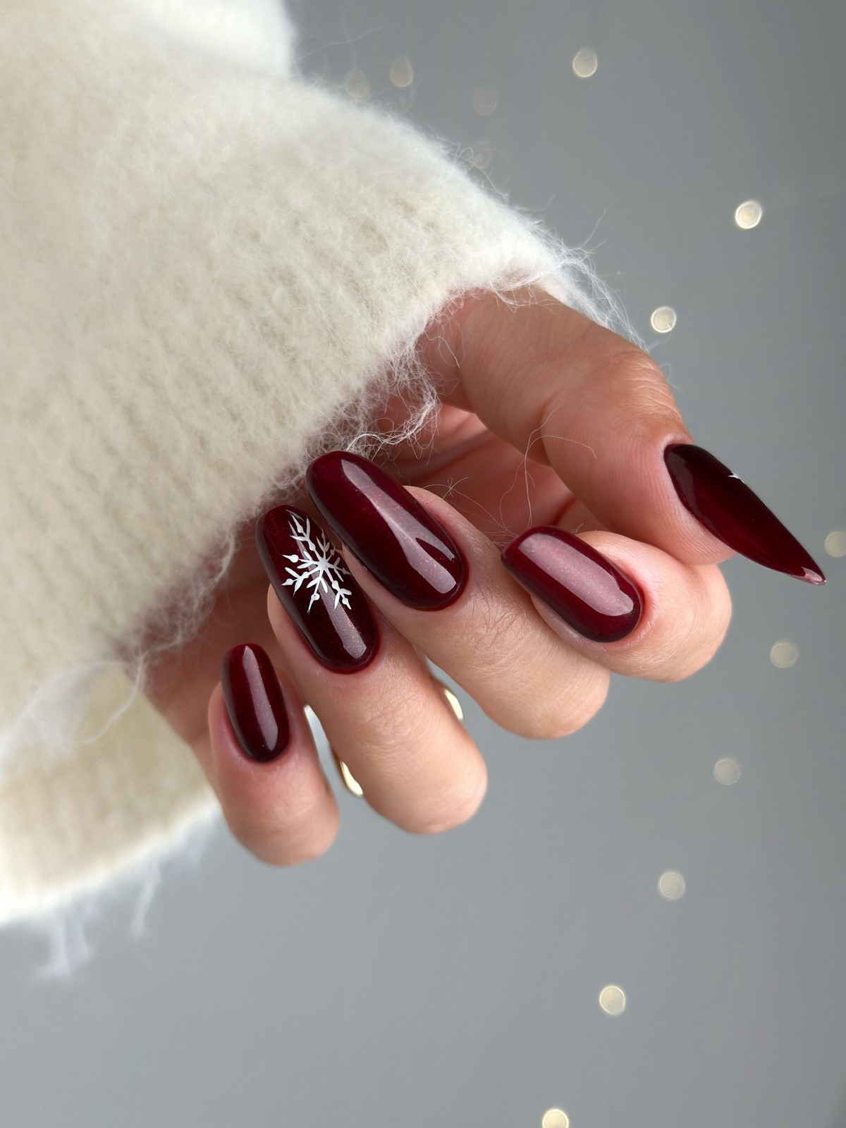 Манікюр зі сніжинками 2025–2026 — це поєднання класики і сучасних технік. Мінімалізм, блиск, скляні текстури, глибокі відтінки і витіюваті снігові візерунки роблять цей дизайн універсальним — він підходить як для повсякденних образів, так і для святкових вечірок. Сніжинки залишаються головним зимовим мотивом, який легко адаптувати під будь-який стиль, довжину і форму нігтів.